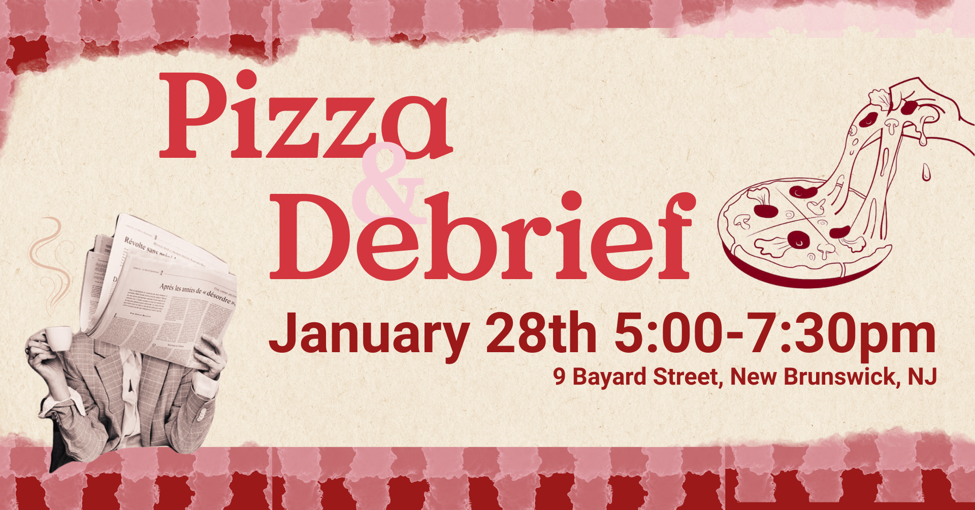 Join us for our Pizza & Debrief session on Wednesday, January 28th at 5 PM at coLAB Arts (9 Bayard St, New Brunswick, NJ)! This event is perfect for anyone interested in learning more about our Documenters program, staying updated, and connecting with other civic-minded individuals.